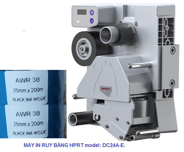 Máy in date mực ruy băng DC24A-E sử dụng băng carbon, được làm bằng hỗn hợp vật liệu cơ bản và nhựa, có chiều dài lên đến 200 mét.